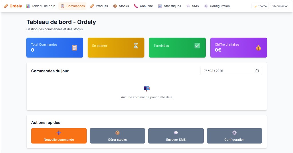 Application de gestion de commandes pour commerces de proximité. Les clients envoient leur commande par SMS, le système la comprend automatiquement grâce à l'IA et l'organise dans un tableau de bord.